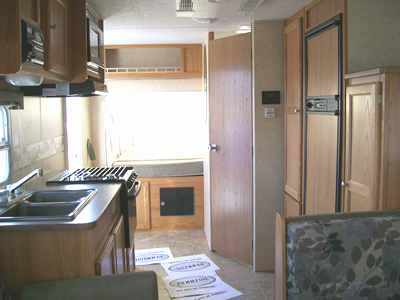 Sleeps 6 3 Burner High Output Gas Range Laminated Countertops All Roof Ducted A/C 6 Gallon Gas Water Heater Water Heater By-Pass 120 Volt GFI Protected Circuit(s) Phone Jack Bathroom Skylight Outside Storage Compartment TV Antenna and Cable Hookup Digital AM/FM/CD w/ Remote Microwave Oven Indoor/Outdoor Table Functional Length - 21’ 10” Exterior Width – 96” w/o Awning Exterior Height -9’ 9” w/ AC Tire Size - 14 in. (36 cm) Furnace BTU - 20,000 Fresh Water Tank - 30 gal. Gray Water Holding Tank - 30 gal. Black Water Holding Tank - 30 gal. Converter w/ Charger - 55 AMPS Towing Class 3 Receiver Required Round-7 Electrical Connector Electric Brakes 2 5/16” ball required & furnished Weight Distribution - Anti-Sway Bars 5 Day Rate is $505